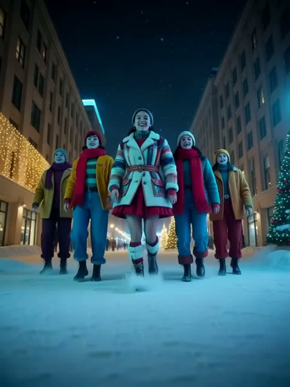 Christmas Pop Acapella, Rhythmic Holiday Music, Vocal Band Performance, All sounds are voice-generated, produced entirely by human voices, No instruments, no synths, no pads, no guitars, BPM 140, fast-paced, driving, energetic, This rhythmic holiday track captures the vibrant spirit of the season, echoing the joyful sound of bells and chimes, The six-member mixed acapella ensemble (Female Lead, 2 Female Harmonies, 1 Male Harmony, Bass, and Beatbox) delivers a dynamic performance, The arrangement builds from tight rhythmic grooves in the verses, featuring the specialized roles of the Beatboxer and Bass Vocalist who provide a strong, foundational rhythm, The chorus explodes into an uplifting wave of complex, layered harmonies and bell-like scatting ("ding-dong, " "ring-a-ling"), creating a celebratory and danceable mood, The song conveys pure joy and anticipation, perfect for lighting up a cold winter night with its bright, heartwarming, and irresistibly festive soundscape, ‑Synthesizer, ‑strings, ‑FX sounds, ‑pad, ‑guitars, ‑electric guitar, ‑trumpet, ‑sax, ‑piano, ‑organ, ‑harp, ‑keyboard, ‑drum machine