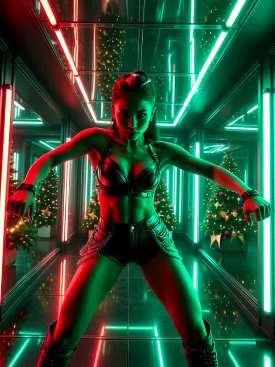 Electro-Pop Dance Vocal Performance, Acappella Vocal Band, driving rhythm, All sounds are voice-generated, produced entirely by human voices, No instruments, no synths, no pads, no guitars, fast-paced, BPM 130 up tempo, An energetic and highly rhythmic track, mimicking the explosive synths and bass drops of 2000s electro-pop, The mood is glamorous, sexy, and provocative, capturing the euphoria of a high-energy Christmas party, The vocals are confident and powerful, built around a solid foundation of beatboxing (M3) and deep male bass (M2), The arrangement features complex layered harmonies (F2, F3, M1) creating a shimmering, synth-like texture, contrasting with the cool, mysterious lead (F1), The atmosphere shifts from a dark, rhythmic groove in the verses to an overwhelming, joyful release in the chorus, The track is designed for dancing and celebrating a modern, unconventional holiday night, ‑Synthesizer, ‑strings, ‑FX sounds, ‑pad, ‑guitars, ‑electric guitar, ‑trumpet, ‑sax, ‑piano, ‑organ, ‑harp, ‑keyboard, ‑drum machine