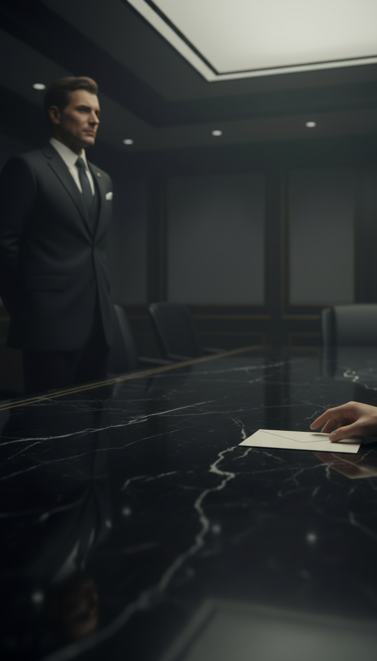 Dystopian ambient, corporate soundscape, coldwave, spoken word, sterile atmosphere, deep sub-bass pulse, glitchy electronic textures, subtle alarm tones, luxury surveillance vibe, soundtrack to a silent takeover