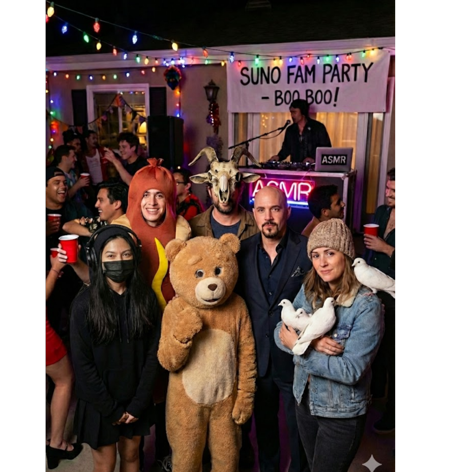 This upbeat party track kicks off with late 90s/2000s indie rock and 90s alternative—upfront melodic bass, jangly guitar offbeats, sludgy drums, Verses blend tense, talk-sung vocals and brooding fuzz, while choruses explode with chaotic distortion, cymbal crashes, and frenzied vocal yelps, A sparse, dreamy breakdown gives way to dense atmospheric riffs and crashing percussion, An aggressive southern hip hop section takes over with rapid-fire raps, syncopated boom bap, pounding 808s, snapping trap hi-hats, and layered percussion, Dynamic breaks flip into lofi house with crunchy samples, bright quirky synths, and punchy bass for a playful edge, Group chants, claps, and crowd swells build to a euphoric, explosive final chorus