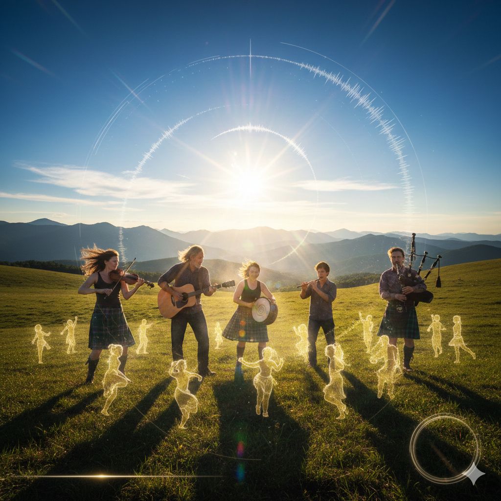 High-Energy Irish Reel, Solar-Charged Celtic Folk, 128BPM, Driving Acoustic Rhythm, Radiant Fiddle Solos, Uplifting Tin Whistle, Powerful Bodhrán Beats, Shimmering Celtic Harp, Brilliant Sunlight Atmosphere, Vast Meadow Energy, Crystal Clear High-Fidelity, Joyful and Majestic, Natural Acoustic Resonance