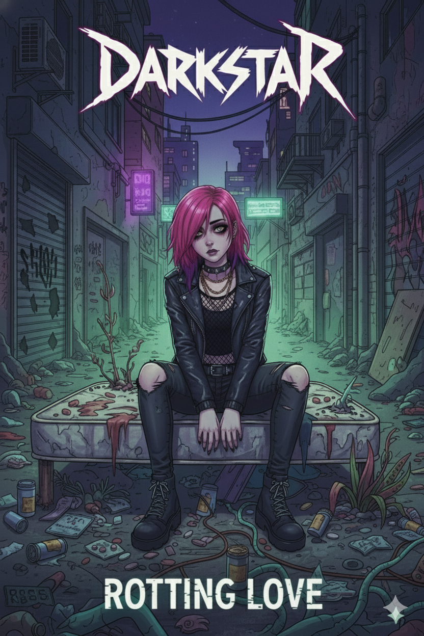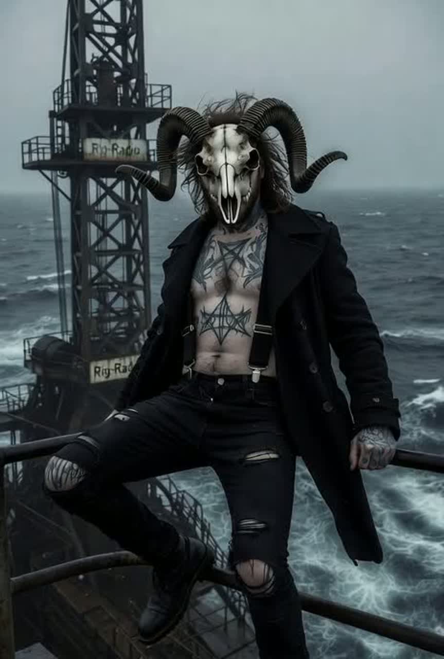 A hybrid of Electronic Rock, Nu Metal, Rap Rock, and Industrial Metal built on distorted bass pulses, glitch synth riffs, and heavy down-tuned guitars locked into a grinding rhythmic groove, Verses use sharp, percussive rap delivery with digital grit, metallic textures, and tight syncopation, Choruses rise into soaring yet gritty melodic lines layered with aggressive harmonics and atmospheric echoes, Industrial elements drive the backbone: clanging percussion, filtered noise bursts, stuttered samples, and mechanical rhythm loops, The overall vibe blends rebel energy with dark futuristic ambience, using risers, glitch breaks, and hard drop transitions to create the feeling of an outlaw broadcast pushing through static, Vocals alternate between controlled aggression, rhythmic punch, and cinematic lift, supported by punchy low end, clean mids, and crisp high-end presence, Mastering stays clean and powerful with a stable limiter ceiling