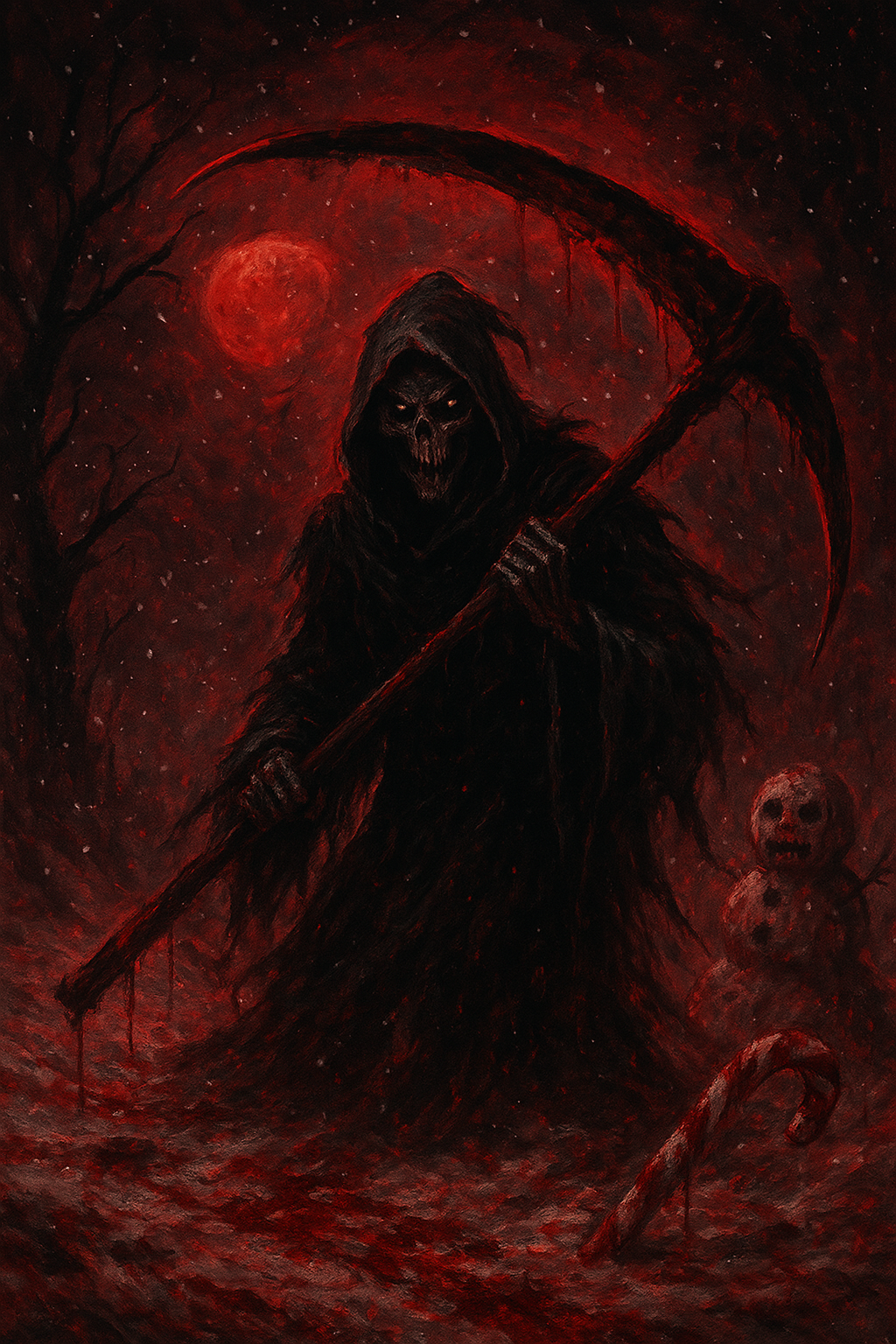 Cold, fast industrial death metal built on blast beats, grinding chugs, and frosted drones, Bells, chains, and wind layers twist Christmas imagery into a winter-horror overture, Vocals stay harsh, with brief whispered accents, and the mix is wide but dry, like steel echoing inside a frozen valley