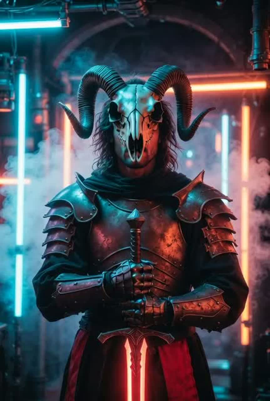 A cold, haunting industrial-metal ritual driven by steady Drop-C guitars, sub-sine drones, and glitch-choir atmospheres, Drums land like metallic machinery opening and closing, supported by ritual tom pulses, Pads create a sacred, cavernous space with hiss, reversed chimes, and glitch sparks, Vocals move from whisper-soft introspection to layered cyber-choir and one sharp distorted scream, embodying each fractured self, Overall tone: eerie, sacred, digital, introspective, ascending โ a memory haunting turned into empowerment
