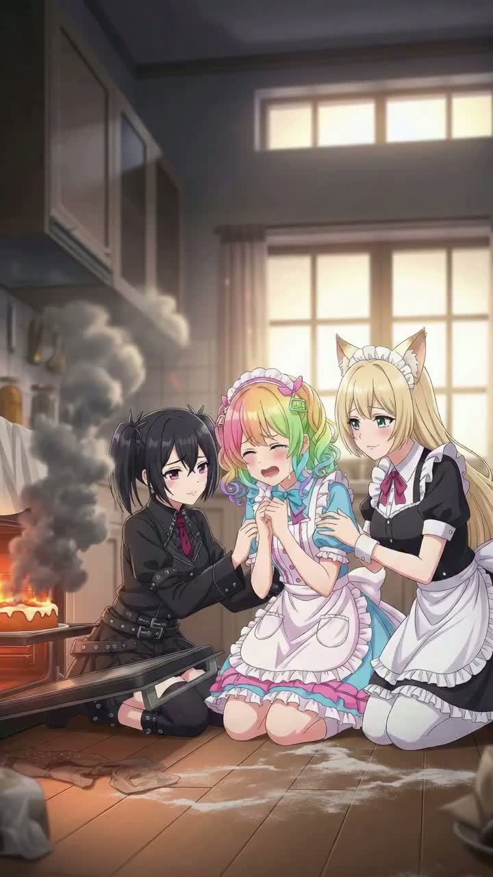 Rhythm: A simple, swinging drum beat, often with brushes on the snare, and a walking bassline (upright bass or clean electric bass), Harmony: A clean electric guitar playing simple chords with a slightly twangy tone, A gentle saxophone could provide fills or a short, sweet solo, The primary focus is on the layered vocals, Intro/Outro: Starts and ends with strong vocal harmonies, The song ends with a final comedic sound effect of a smoke alarm, [Mood]: A fun, narrative song telling a story of a cute kitchen catastrophe
