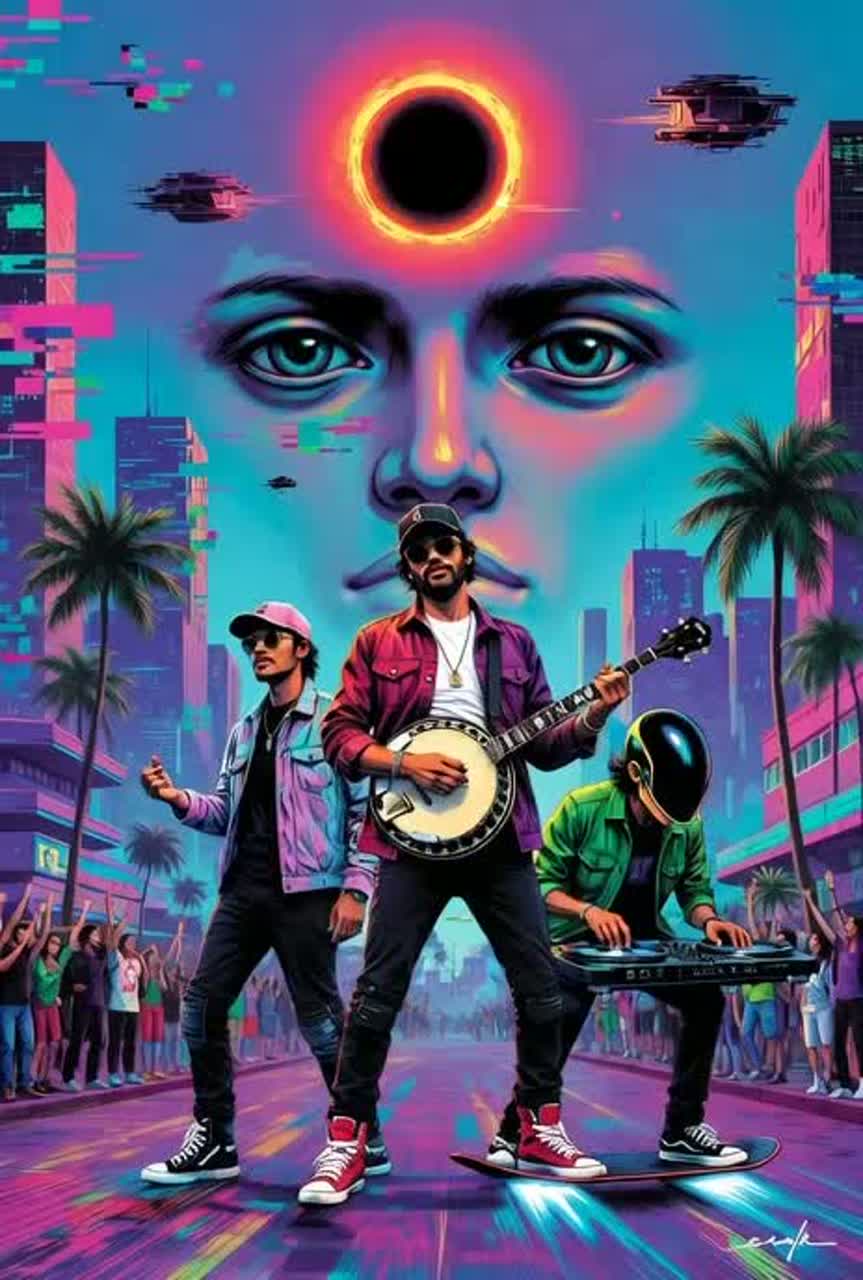 A sharp trip-hop pulse built on a deep kick pattern, tight rim taps e a steady mid-tempo drive, A minor i–VII–VI–IV loop supports warm plucked lines that add an indie-folk accent, Daft Punk’s Funny Disco Futuristic Cyber Punk, Daft Punk’s Vocals, Trippy, Cinematic, Sound Effects, Club Disco, Emo Punk Rap Poser, Experimental, Chill Futuristic, Rap/Trap, Lil-Wayne Style, Wayne High-Pitched, Raspy, Fast Quick Flow, Ad-Libs, Yelps, High-Pitched, Energetic, Unpredictable, Slightly Nasal, Autotune, Weezy, Piano-Laced 808S, Slurry Singsongy, Emperor’s Villainous Beat Drop, Dramatic, Gospel, Rap, Electonic Bass Rock, Pop Rap, Club Banger, Trap Song, Melodic Rap, Rap, Rich, Live From Wembly, 1967 London Pub Rock Scene, Psychedelic Electric Guitar Whaling In Dark Bar, Live Music The Echo And Reverb Are Maxed, Psychadelic Trippin On Shrooms Rock And Roll Near Post Malone’s Voice Post Malone’s Vocals: Gravelly, Emotional Lead On First Verses — Raw And Pleading, Heartfelt, R&B, Pop, Ethereal, Ca