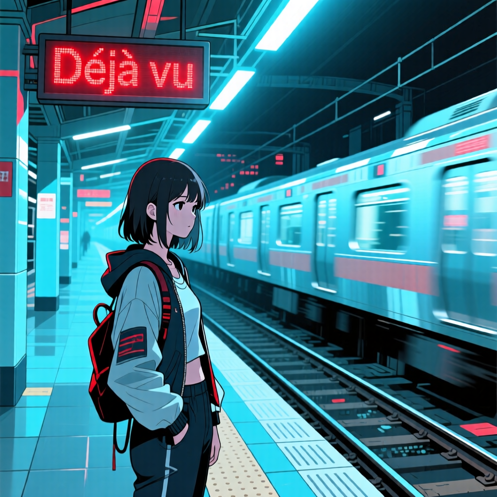 A stylish "UK Garage" and "2-Step" influenced J-Pop track, pulsating at a shuffled 132 BPM, The rhythm section is defined by a syncopated, skipping kick drum pattern and crisp, sharp hi-hats (2-step beat), Deep, wobbling sub-bass lines underpin the track, creating a dark yet groovy urban atmosphere, The production features chopped vocal samples and subway announcement sound effects blended into the mix, The female vocal is soulful, smooth, and rhythmic, gliding effortlessly over the complex beats with a touch of R&B melancholy, The chorus is catchy and melodic, contrasting the rapid-fire beats with sustaining chord pads, The overall sound is nocturnal, sophisticated, and slightly hypnotic, perfectly capturing the feeling of being lost in a metropolitan transit system