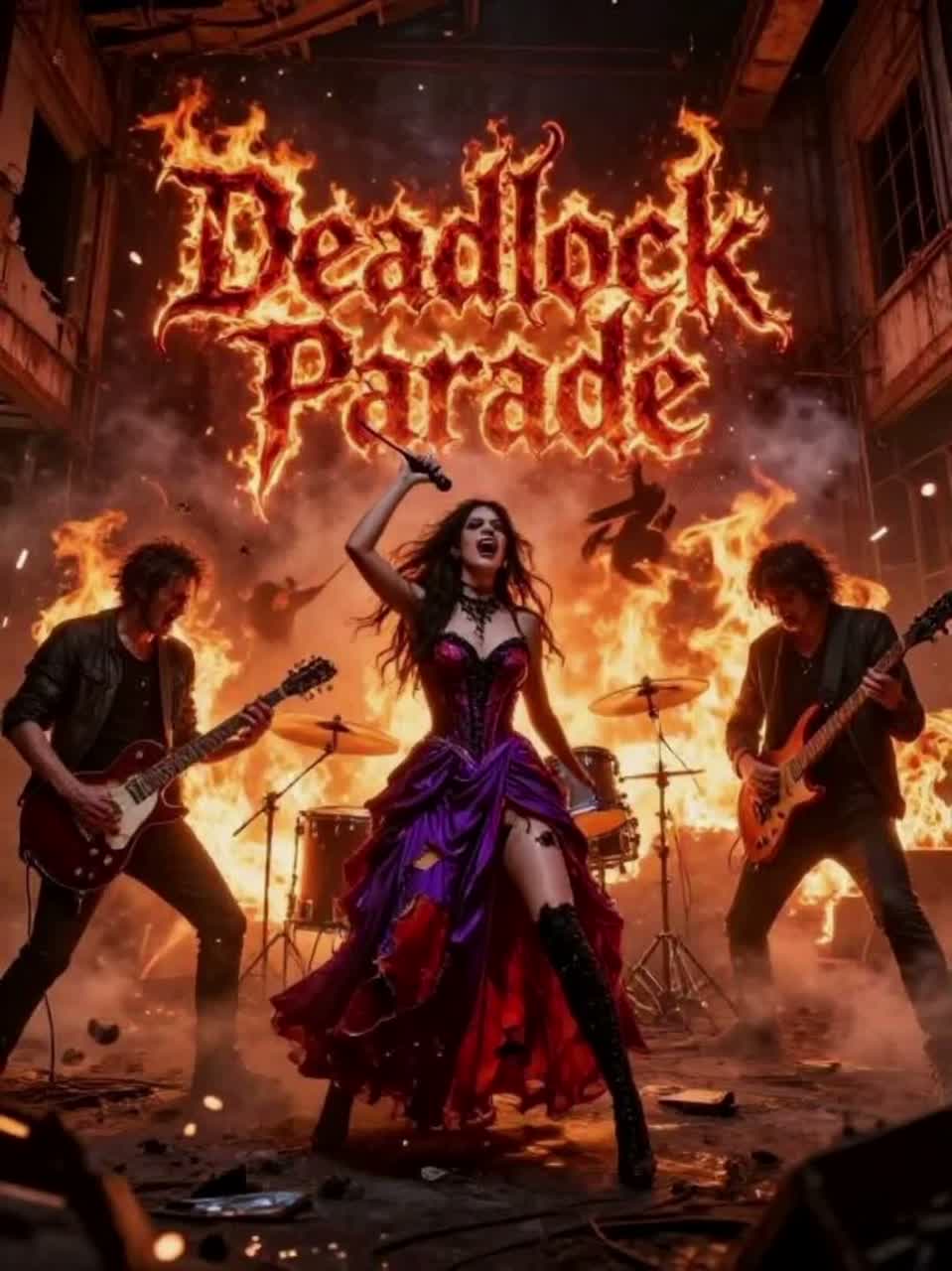 Polymeric Metalcore erupts with off-kilter guitar-drum interplay, slashing through deep, pulsing bass and eerie distorted seductive female vocal samples, Verses lock into poly-rhythmic grooves, layering emotional female clean vocals over wide guitar textures, Choruses explode with 8-part harmonies fusing anthemic singing and guttural female screams, interlaced with fading guitar leads and live vocal swells, Nostalgic piano and guitar motifs echo in Mixolydian mode, always doubled by seductive vocal phrases, as tight synergy between guitars and polymetric drums maintains relentless tension, Clean guitars coupled with Piano echo a beautiful yet chaotic memory