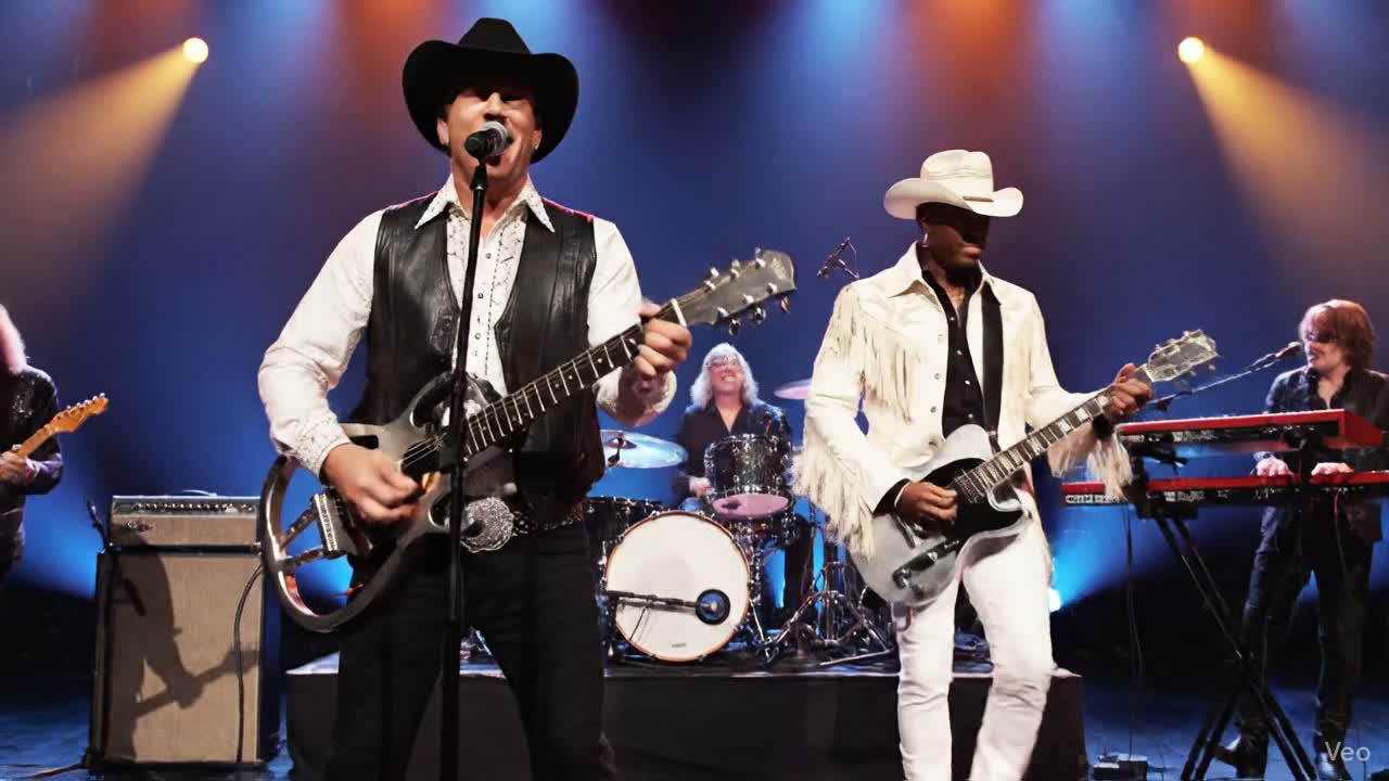 Male vocalists, country and black hip-hop singer, Intro: powerful guitar riff duo