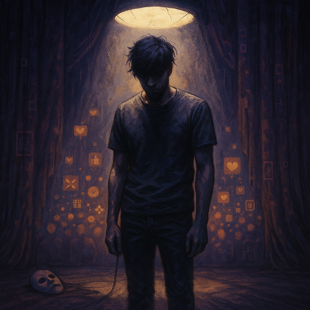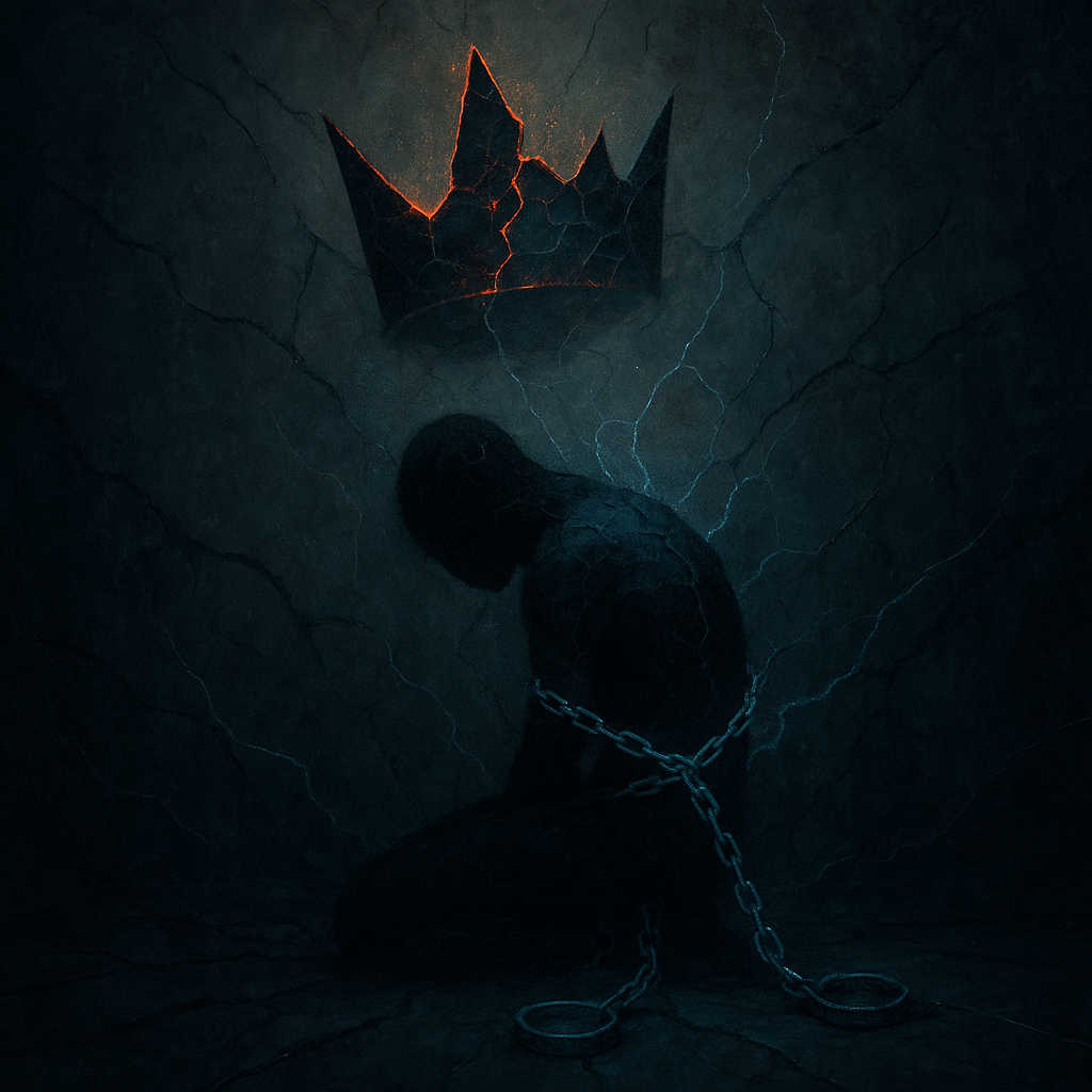 An unhinged, progressive metalcore/deathcore hybrid that opens with explosive, mathcore-inspired chaos — jagged rhythms, dissonant riffs, and relentless blast beats mimicking the unstable ignition of a doomed rocket, The verses spiral upward with rapid tempo changes and tightly wound polyrhythms, evoking reckless acceleration, Midway, the song shifts into a false triumph — soaring leads, major-inflected harmonies, and a deceptive sense of stability — before the crash: an earth-splitting breakdown that slows, then slows again, crushing the listener with each hit, The final section blends atmospheric dissonance with low, sustained chugs, portraying the smoldering wreckage of impact, Vocals range from frantic screams to guttural roars, lashing out against the self-delusion that fueled the ascent