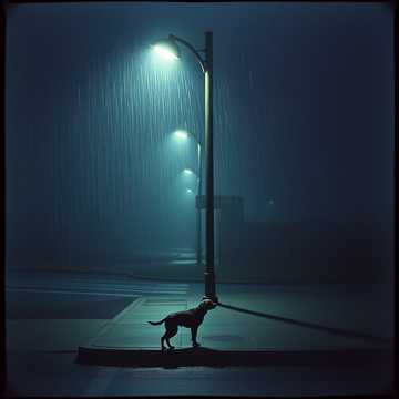 dark emotional blues rock, Gerry Boulet style, raw vocals, heavy guitars, atmosphere inspired by a stray dog under a streetlight