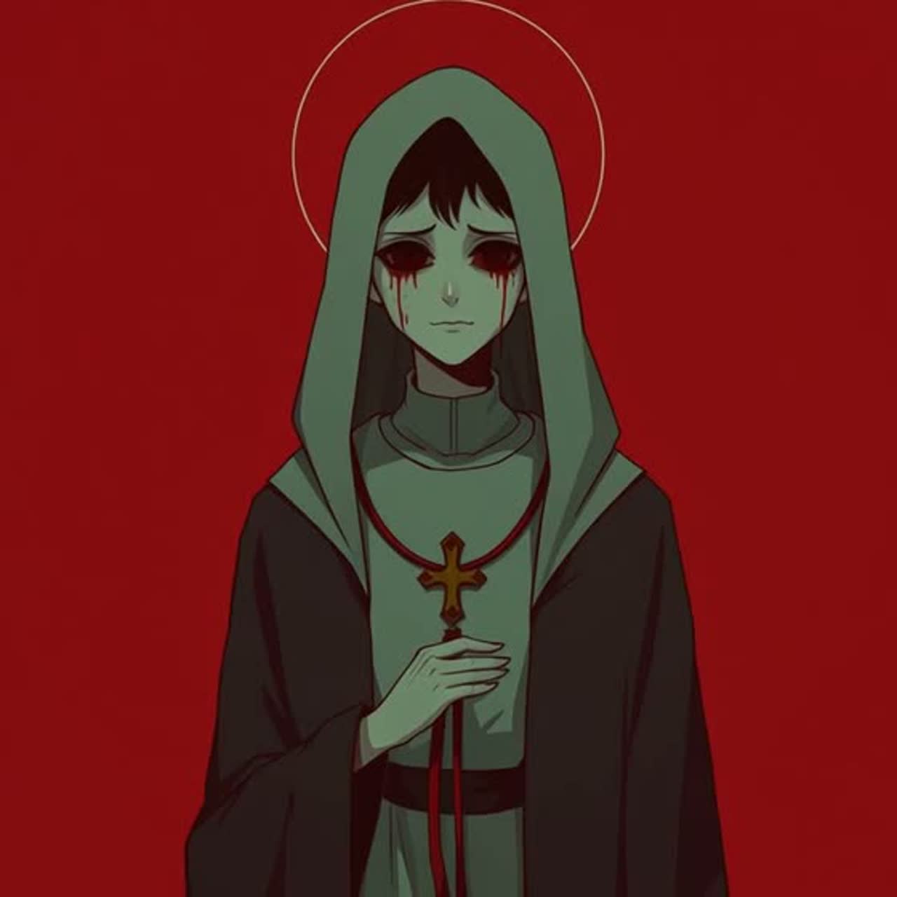 Melancholy and grace, faith amid sorrow, nostalgic Taisho beauty reborn through digital decay