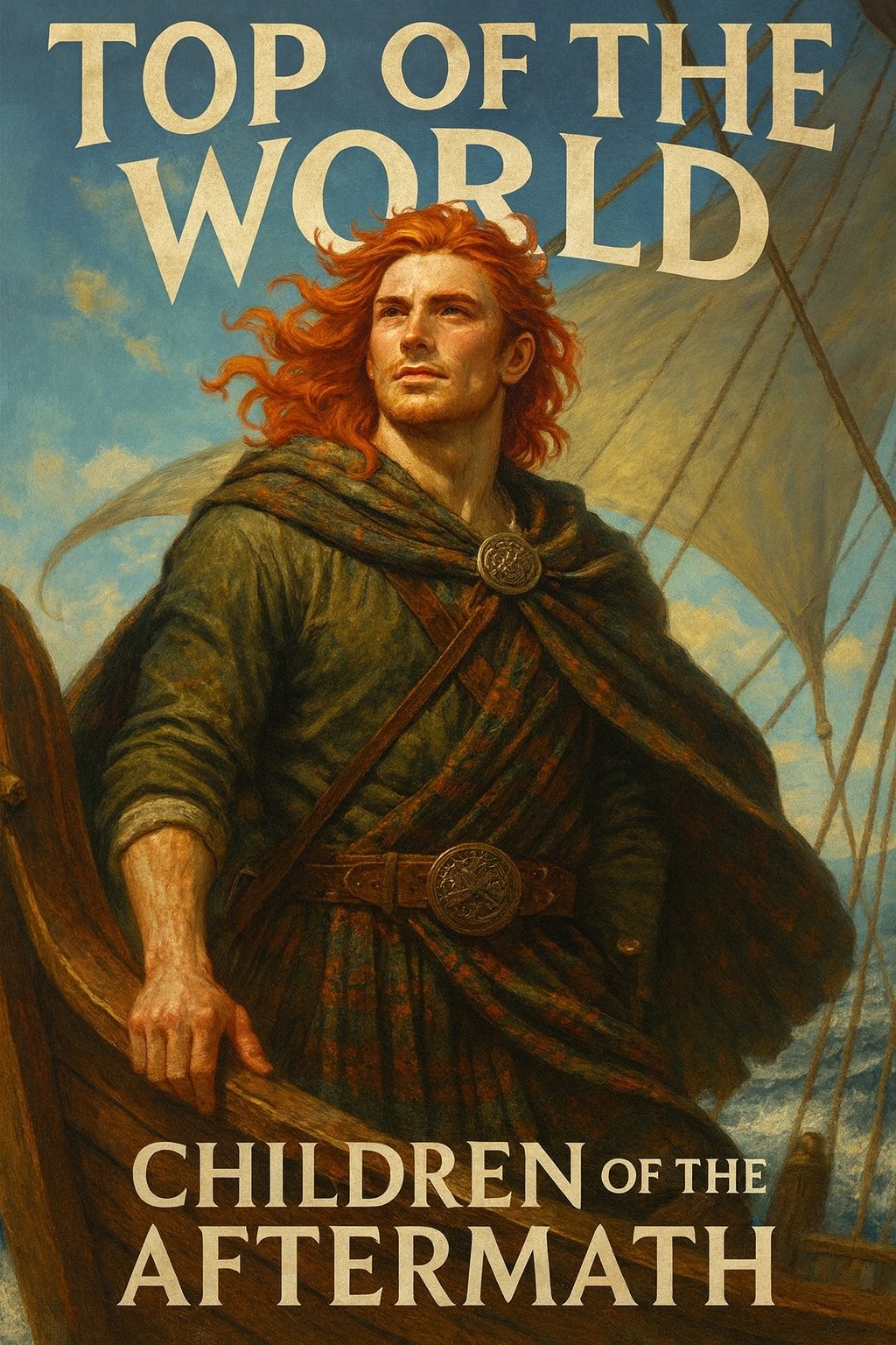 A Highland folk-shanty unfolds with deep Celtic male chorus and pulsing bodhrán under rich reverb, Lush strings and tin whistle interweave, buoyed by windswept Celtic textures, Bagpipes surge in mid-song, fueling a thunderous, swelling climax that releases into a heroic, grand finale