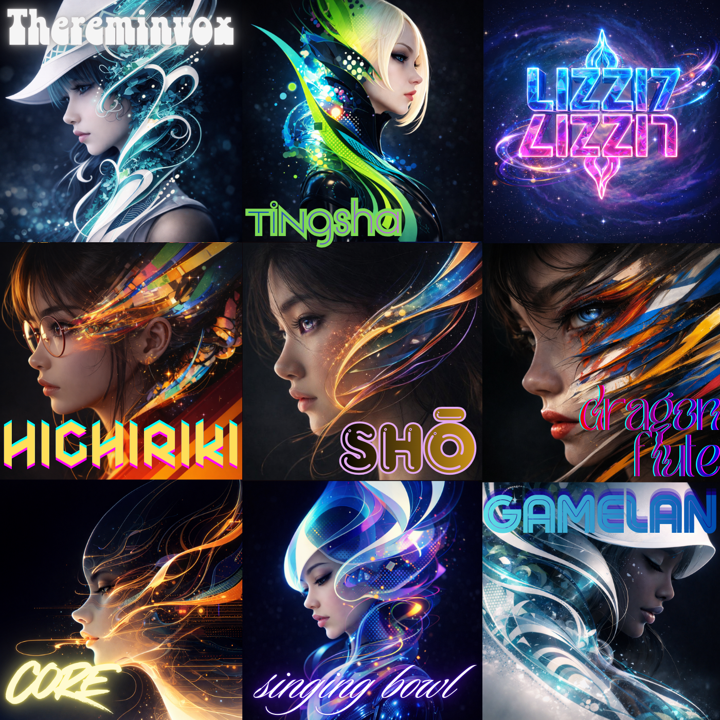 cute+intense female vocal, girls group, beautiful chorus and cosmic language(multilingual sci-fi), vocaloid, k-pop, 70's japanese idol pop song, kayoukyoku, acid breaks, Nu-Disco, Electro-Industrial, catchy apocalyptic sound, Thereminvox, gamelan, singing bowl, tingsha, Hichiriki(small double-reed wind instrument used in gagaku), Shล, dragon flute(medium-pitched bark-covered bamboo transverse flute with seven holes, used in gagaku), Liquid Drum and Bass, cosmic energy-driven soundscape, hyper-modern production, j-new era pop, cinematic