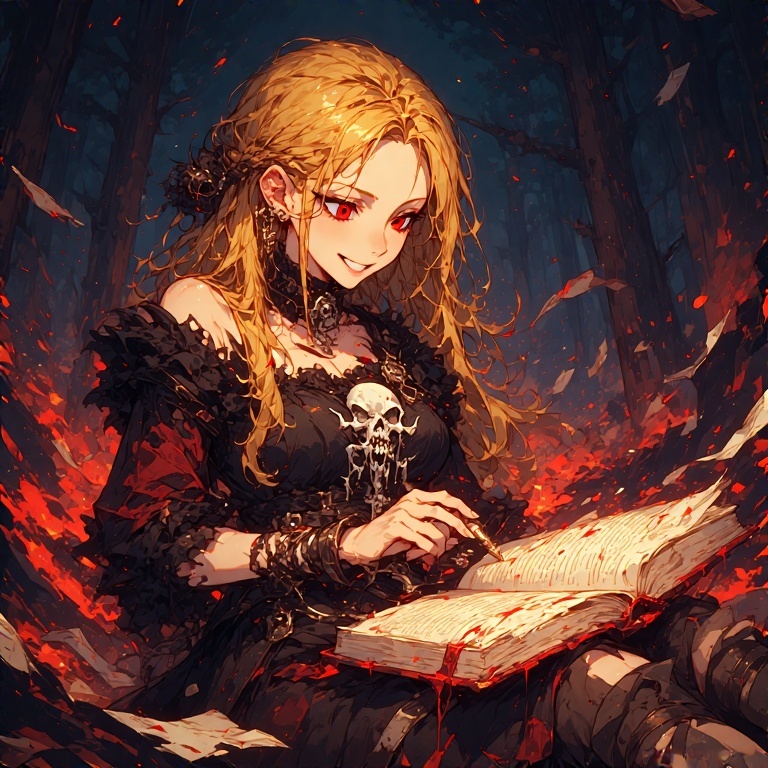 gritty female voice, dark Industrial-metal, Lo-Fi-Melodic-Metalcore, Baroque-Metal, baroque, minor-chord, best quality, dark tone, intense, clear voice, cruel, goth, grudge, Guitar, ambient, vampire