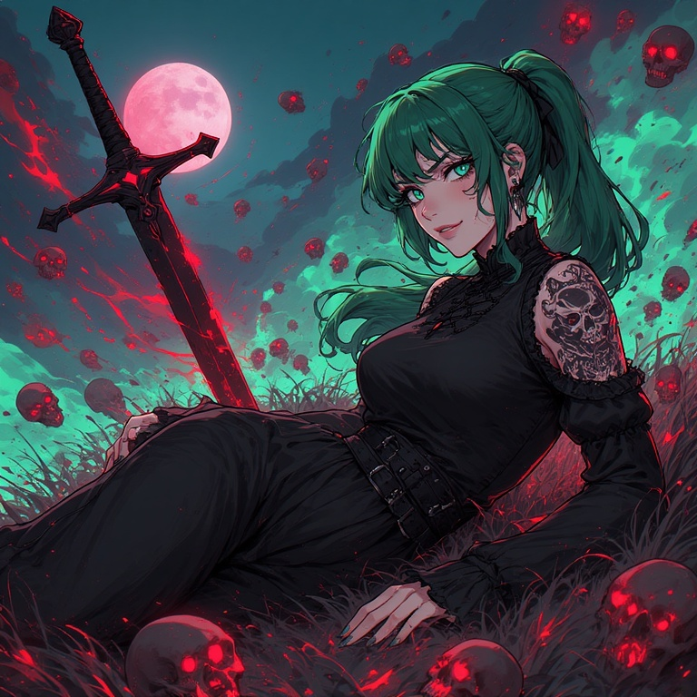 strong female voice, dark industrial metal, dark alternative Metal, dark Post-Grunge, minor-chord, best quality, dark tone, intense, goth, aggressive, emotional, combative, clear voice