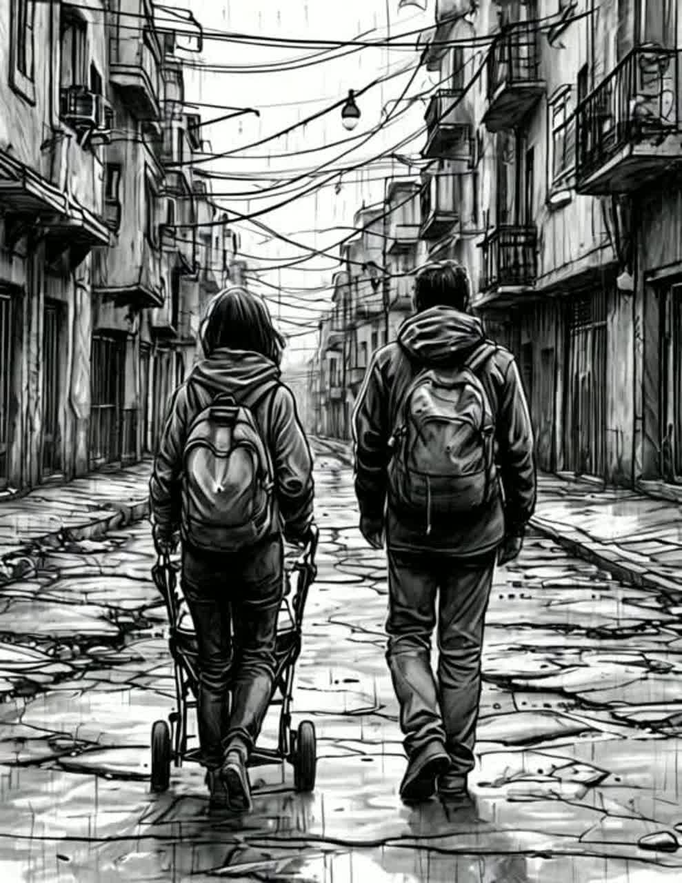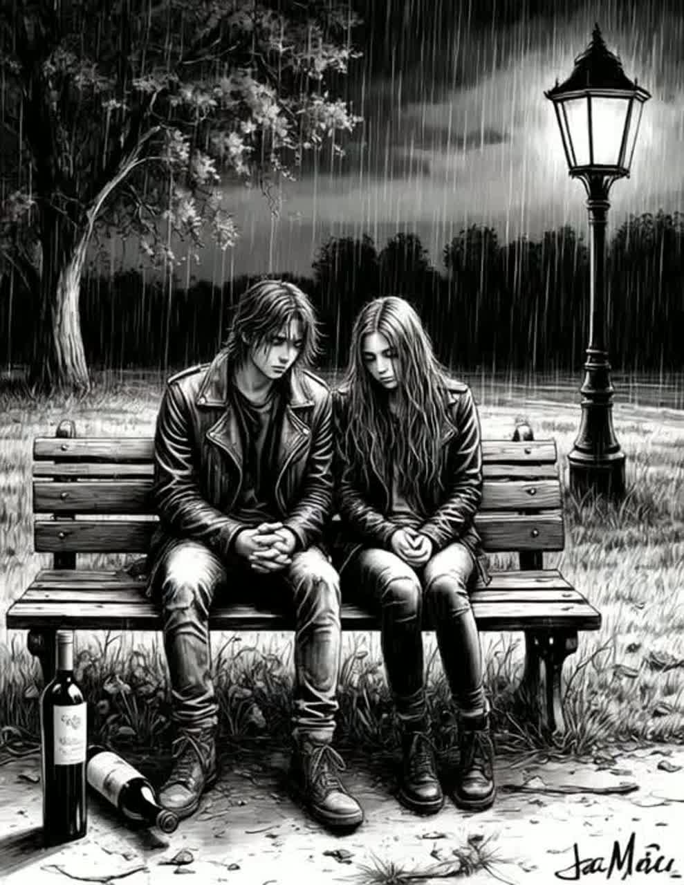 dark, with male vocals delivering a cold, raw; driven by a pulsating bassline, post-punk, and haunting synths, detached tone, sharp guitar riffs, Depression, Hopelessness, longing