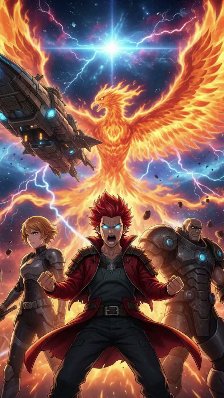 This J-rock track explodes with aggressive guitar riffs, thunderous drums, punchy synth stabs, and bold orchestral flourishes, Lead violin takes over vocal lines, weaving through syncopated verse rhythms and gang-style ensemble hits, Choruses feature triumphant brass, soaring violin melodies, and layered guitars, The bridge spotlights a virtuosic guitar solo trading phrases with a fiery violin, heightening the dramatic anime action energy