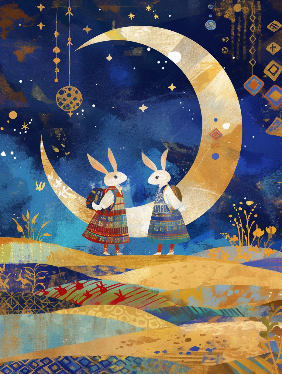 Playfu Gagaku Rock, A dreamy, deep sea and zero-gravity atmosphere with ethereal ambient pads and a central, heavy, distorted fuzz bassline creating an addictive, driving rhythm, track (125 BPM) with a mysterious, and chaotic vibe, The foundation is a bouncy swing rhythm with a four-on-the-floor kick and jazzy piano, The core tension comes from a heavy, distorted, dissonant sub-bass line that clashes with the harmony, A frantic, dissonant shamisen plays glitchy, percussive phrases, The track opens with a quiet, atmospheric intro featuring a haunting shakuhachi melody and spacey synths, representing the moon's silence, It builds into an explosive, danceable chorus where a full big band horn section collides with the chaotic bass and shamisen, The vocals are a jp kawaii female voice, singing in a languid, whispering style, processed with a heavy megaphone effect for a lo-fi, distant sound, Include a mid-song break for a rhyming English dialogue section, The overall feeling is a joyful