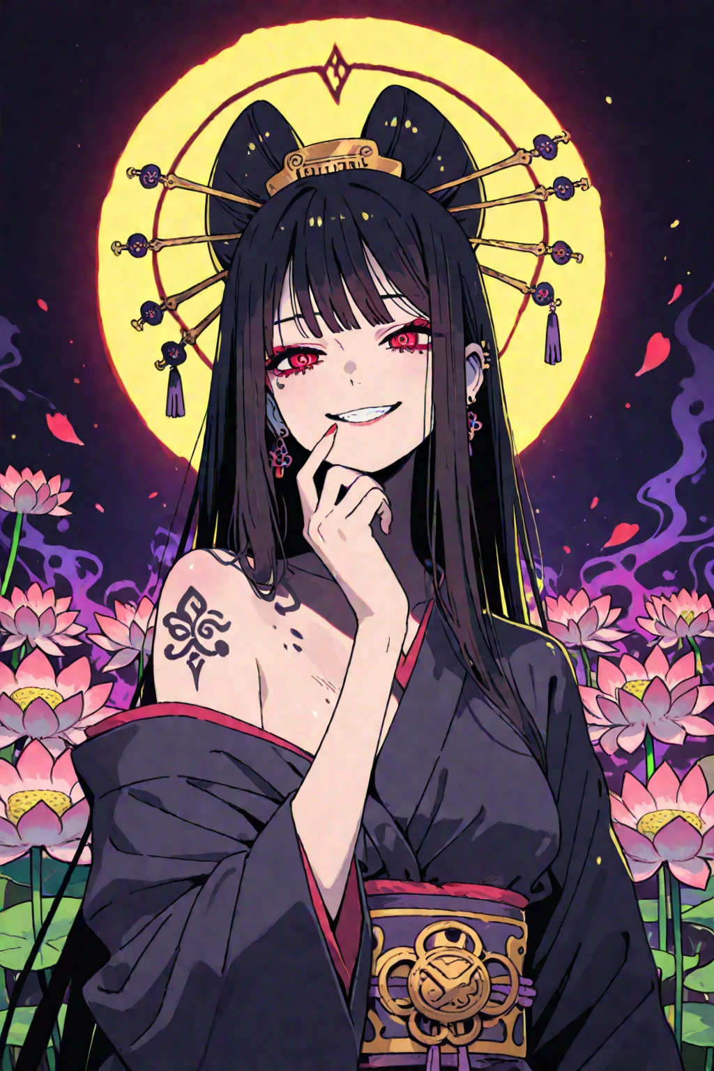 [Song] Epic, dramatic, dark, madness, haunting, melancholic, beautiful yet sinister, A grand fusion of symphonic metal, theatrical rock, and trip-hop, Features a grand orchestra, mournful piano, heavy distorted guitars, powerful drums, and a heavy, dissonant, distorted sub-bass, With traditional Japanese instruments (Wagakki): haunting shakuhachi flute, beautiful koto, aggressive shamisen, and epic taiko drums, Also includes dark electronic beats, atmospheric synths, and industrial noise, Vocals: Jp kawaii female voice, Verse vocals are bewitching, sensual, hoarse, breathy, alluring, and coquettish, almost sticky, Chorus vocals explode with raw emotion, powerful throat-tearing screams, and harsh distorted effects, Extreme dynamics: from a quiet atmospheric intro to an explosive chorus, fading to a lonely whisper at the end