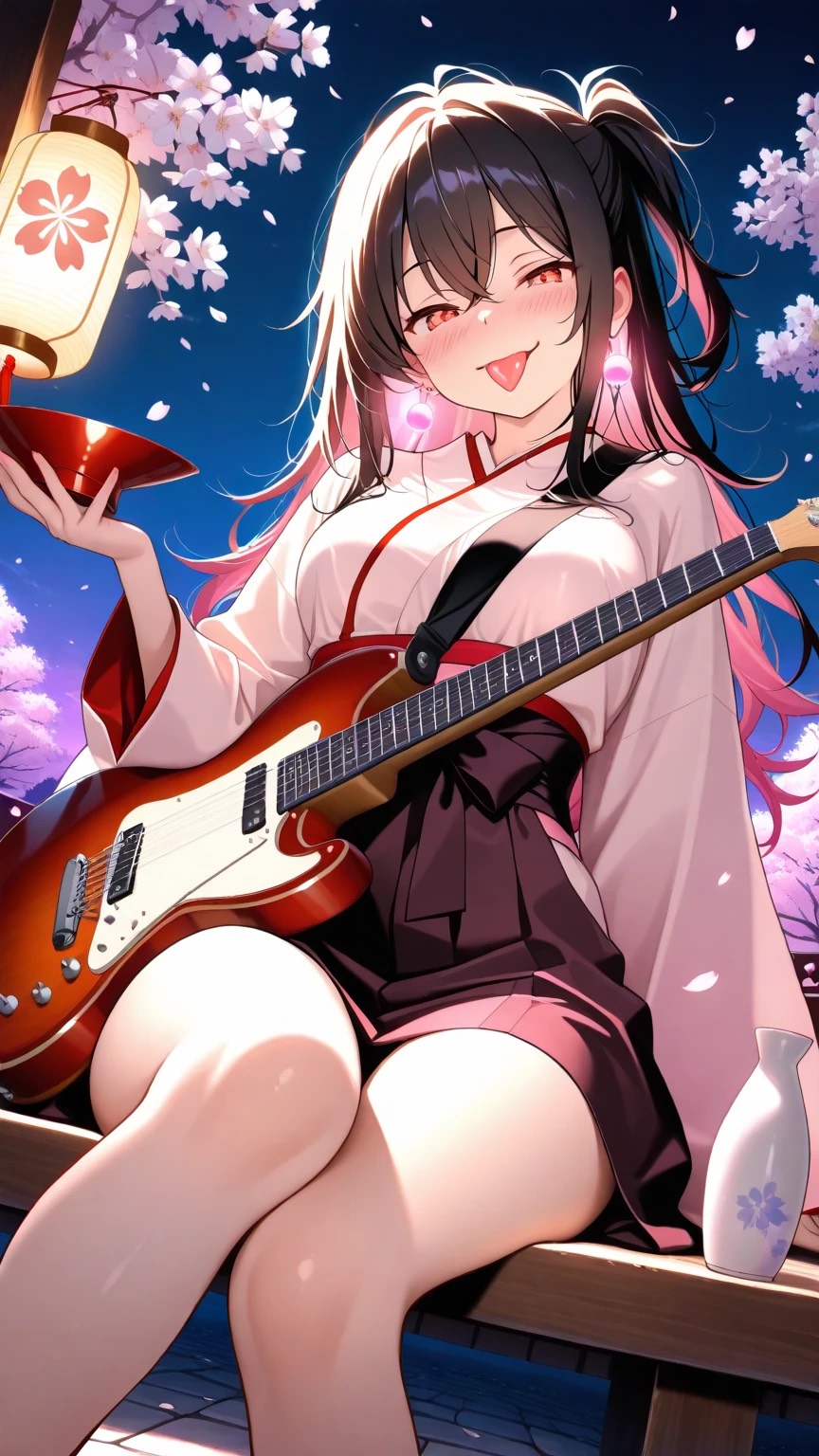 full band, thicker guitars, stronger drums, shamisen doubling the melody, vocals pushed to their emotional peak, Overall mood: tragic, beautiful madness, moonlit, fatalistic, elegant darkness, cherryblossom atmosphere