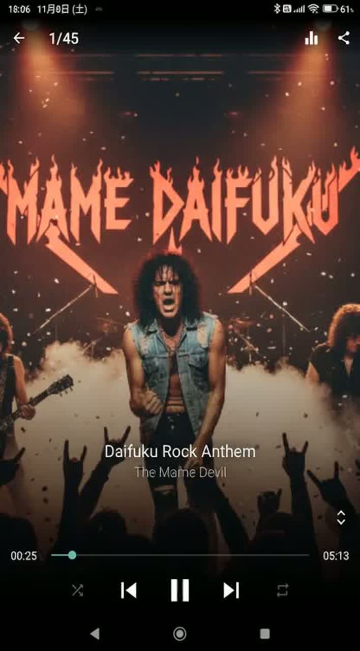 70s style Classic Hard Rock, Gravelly, powerful male rock vocals, Sound characterized by heavy, overdriven guitar tone, a prominent wah-wah pedal effect, driving, syncopated drum rhythms, and a loud, distinct bass line, The song structure should feature an anthemic, sing-along chorus and a long, blues-infused, high-energy guitar solo in the middle, The overall sound should be raw, high-gain, and full of swagger, The theme is about 'Mame Daifuku' (Japanese sweet) as an overwhelming force of desire and comfort, "