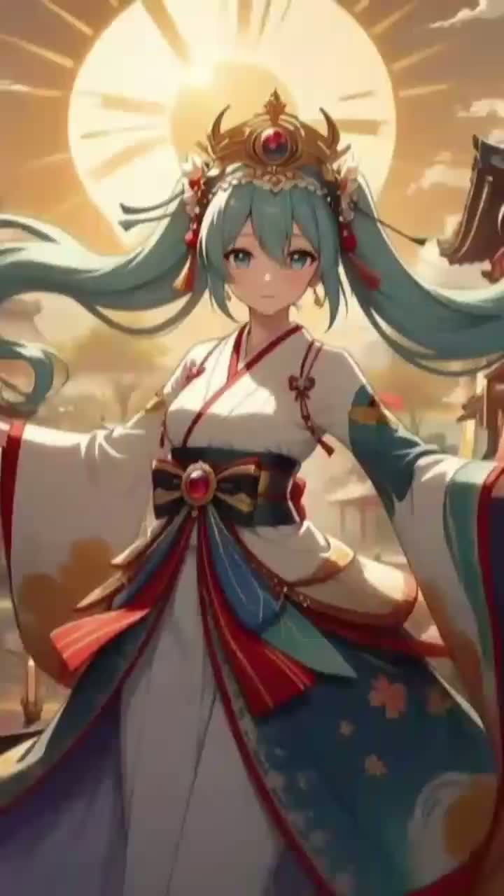 Rhythm: Rhythm-driven, bouncy yet divinely irregular, Strange syncopations and sudden shifts create a ferocious, festival-like sense of imbalance, Sound: Masculine taiko drums and sharp shamisen, punchy koto firmly anchored in a divine, strange rhythm, twin drums with quick fills, stops, and rhythmic tricks, synthesizers with dissonant textures, and tricky shakuhachi, Vocals: Vocaloid, Miku, clear and expressive, powerful rhythmic phrases, melodic hooks, and a playfulness with a dark edge, Lyric Themes: Divinity, an emotional rising sun, impulsive prophetic messages, sincere emotion, strong will, and worship, Structure: Short, rhythmic koto intro, groove-driven sacred chorus, strange breakdown, energetic final chorus, Overall: Rhythmic, sacred, Japanese drum rock, powerful message, yet fun