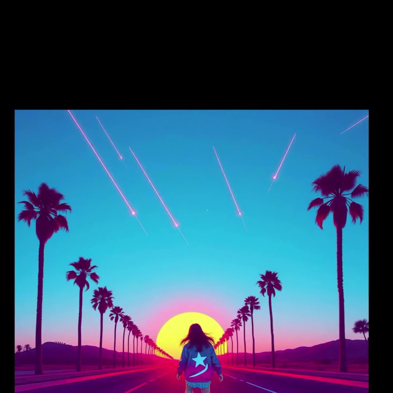 Sweet female med tempo voice, metal punk, Synthwave/retrowave/ lofi/1/4 loop, 1/2 hi hat, back beat 1/2, roland synthesizer, Big drum 100 bpm, echo affect 1/2 loop, huge slow bass and electric guitar