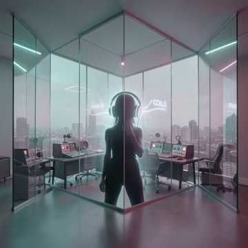 Indie pop, industrial synth pop, emotional female vocal, radio static and transmission effects, workplace cinematic atmosphere, glitch accents, steady mid-tempo drums, corporate ambient hum, call-and-response vocal layering, subtle dystopian tension, anthemic but restrained chorus, broadcast interference motifs, modern alt-pop production