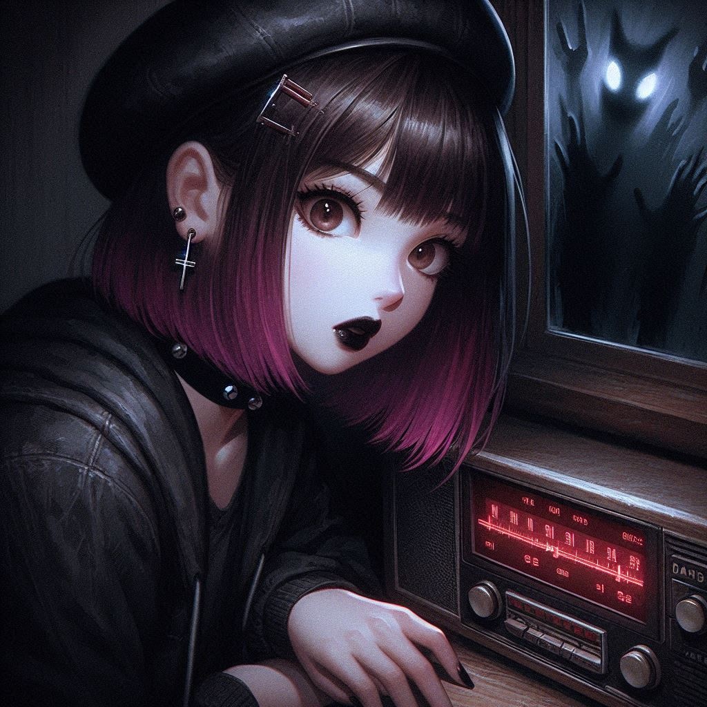 Electro-Grunge x Ghostwave | K-pop x J-Rock fusion, J-Rock, grunge, mid-tempo, emotionally hypnotic, layered with haunting harmonies, melodic, and a gritty-but-sexy groove, annoyed young female vocals with flair, rugged and harsh deep, horror, eerie, dissonant