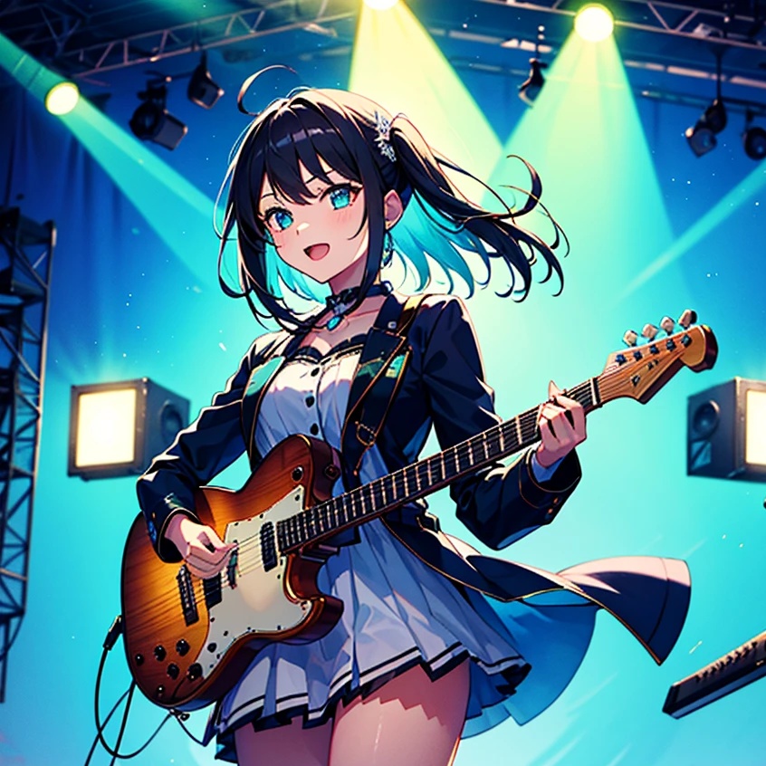 Japanese teenage girl vocals, edm, vibrant, rock band with violin, [upbeat music], [girl group], melodic rock, [Progressive]