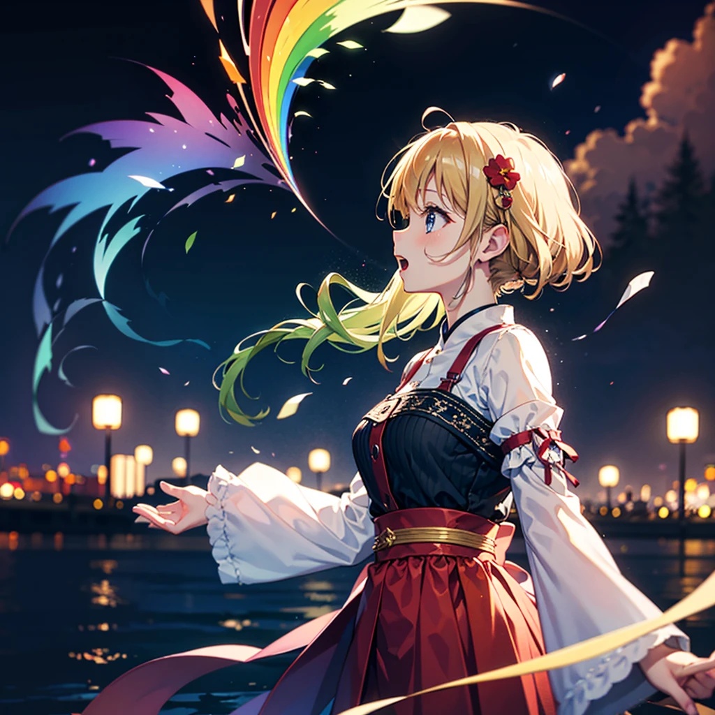 girl vocals, teen, vibrant, Emotional, rock band with violin and flute, [upbeat music], [BPM160]