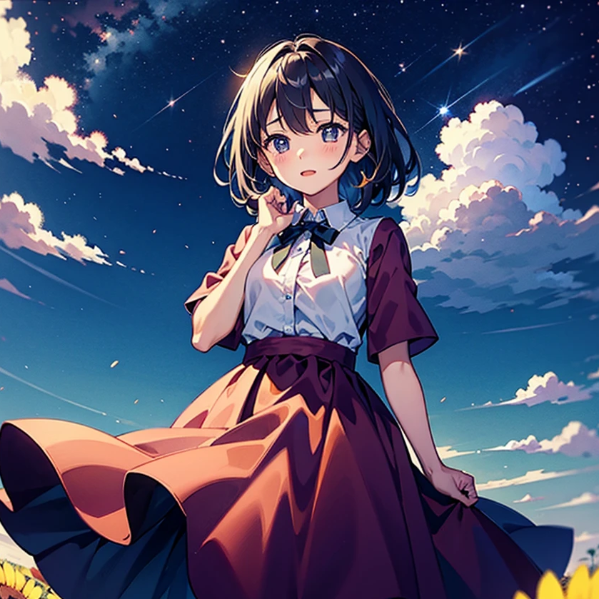 Japanese teenage girl vocals, edm, Ethereal, rock band with violin, [upbeat music], [BPM160], [girl group], j-pop