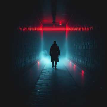 Dark German horror trap, male vocals, Slow, stalking tempo with a crushing sub-bass and distant metallic percussion, Verses stay close and whispered, drenched in reverb; chorus explodes with layered, shouted doubles and eerie choirs, Sparse piano stabs and reversed pads haunt the background, building tension toward a final, abrupt cutoff