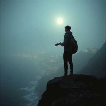 A melancholic acoustic folk song with a female vocalist, The song is in a minor key, likely A minor, and features a slow tempo, The primary instruments are an acoustic guitar, playing a fingerpicked arpeggiated pattern, and a bass guitar providing a simple root-note accompaniment, The male vocalist sings in a clear, slightly breathy tenor, with a gentle vibrato, The vocal melody is simple and follows the chord progression closely, There are no drums or percussion, The production is clean and intimate, with the acoustic guitar and vocals prominent in the mix, The song structure is verse-chorus based, with a clear distinction between the sections, The overall mood is reflective and somber, Tempo: 80 Bpm, 4/4 Time Signature, Key: C Major