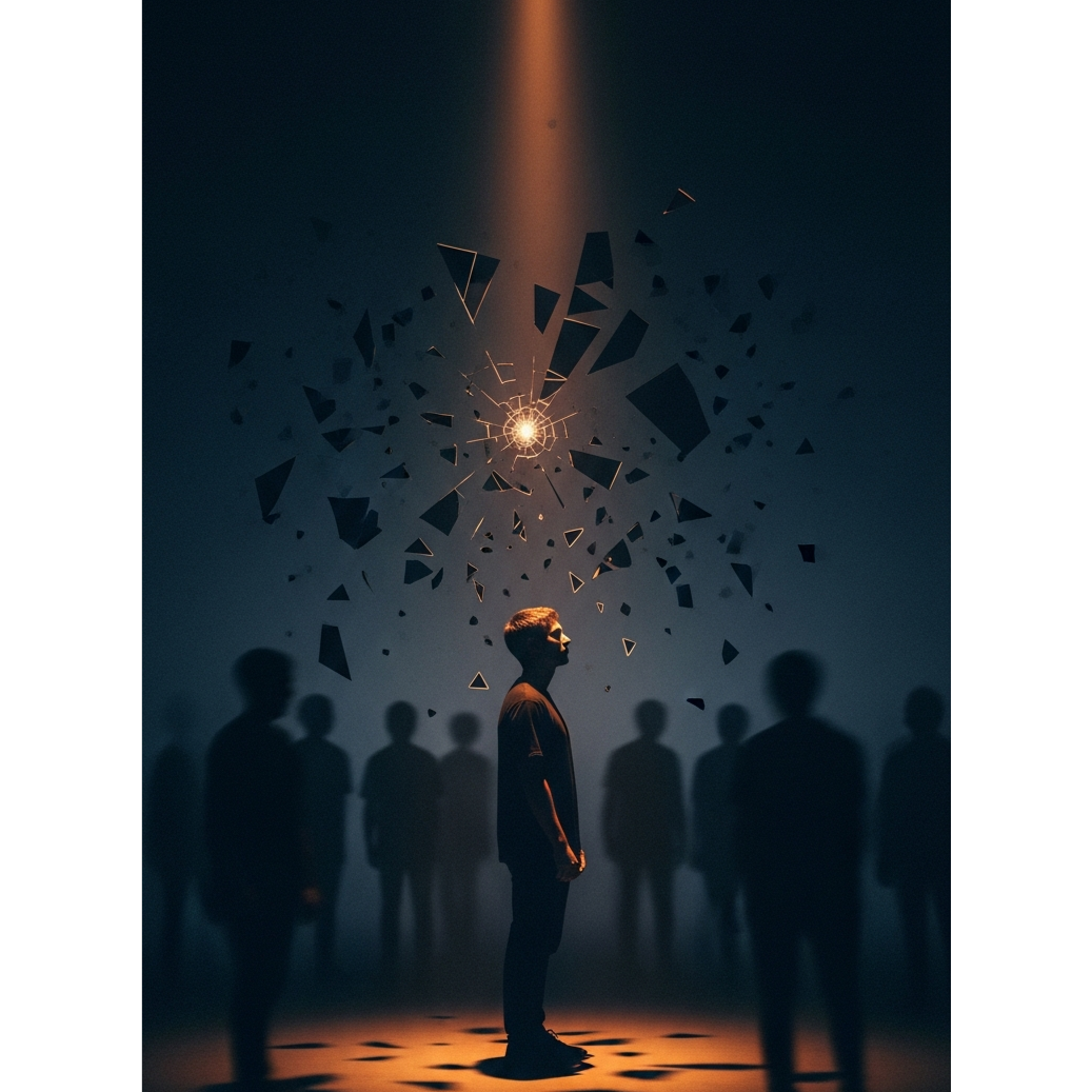 A lo-fi house / ambient hip-hop track about derealization and identity erasure, at 88 BPM