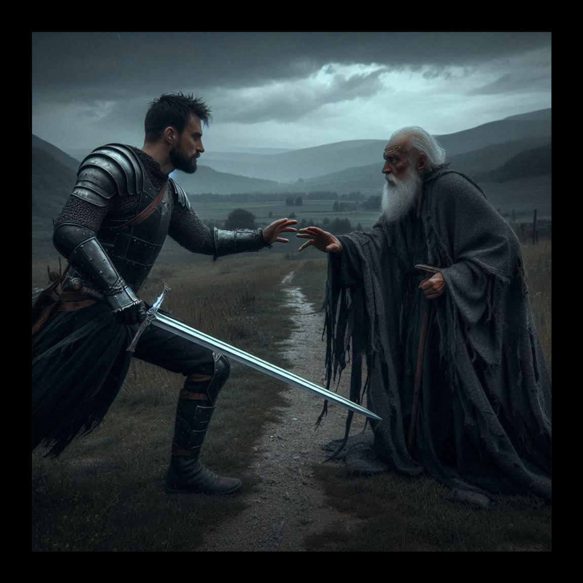 Folk, Ballad, Epic Poem, Dark Ambient, male baritone vocals, acoustic guitar, fiddle, slow tempo, melancholic, dramatic, atmospheric, medieval influence, nature sounds (wind, distant birds)