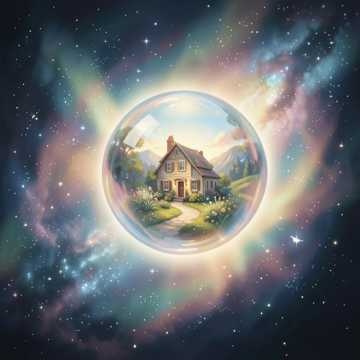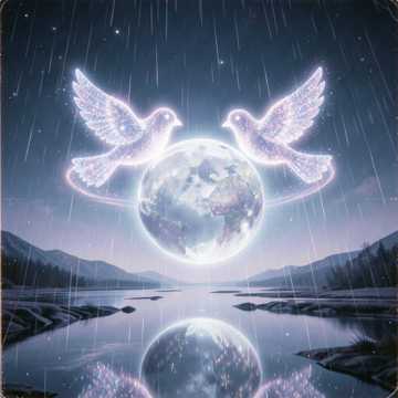Airy cosmic downtempo with soft pulsing synths, distant choirs, and gentle sub bass; slow build from intimate whispers to a wide, glowing chorus, Sparse piano notes and shimmering pads cradle the vocal, with subtle echo and reverb to feel weightless and meditative, female young/female duet trades lines, blending into lush harmonies on the hook, while light percussion and reversed textures give a sense of drifting through galaxies