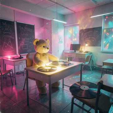 Disco / synthwave groove with bright analog pads and funky bass; tight four-on-the-floor kick, glittery arps, and rhythmic guitar chops, Female vocals lead, playful and sultry, kids’ choir explodes in the chorus with big stacked harmonies, Sax solo after second chorus, drenched in reverb and delay, then final chant with claps and rising synths