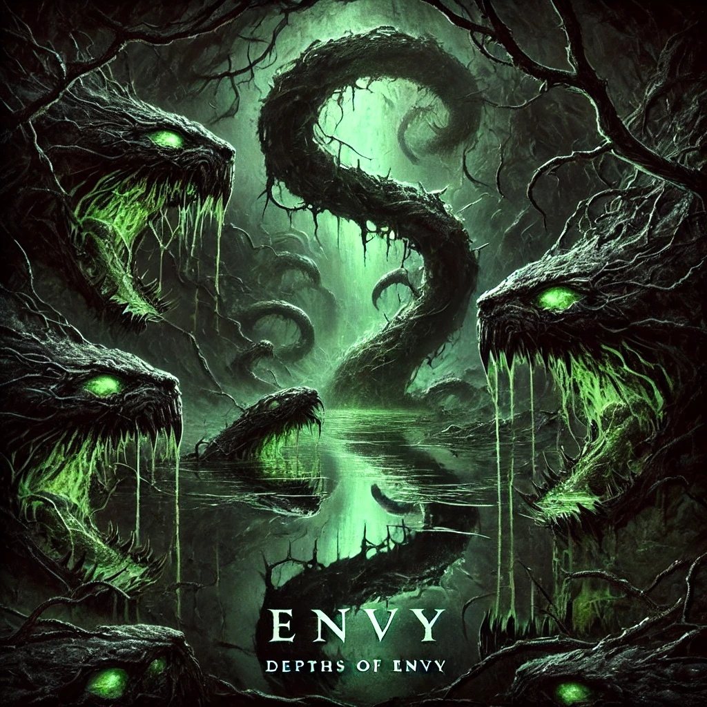 A-Capella, dark and haunting, layered harmonies mimic ocean currents and crashing waves, swirling vocal crescendos, venomous whispers, ethereal and hypnotic tones, chaotic yet poetic atmosphere
