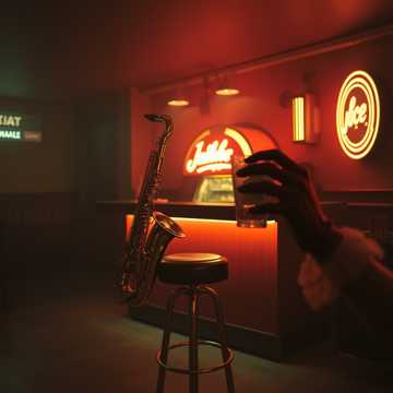 jazz, Smoky late-40s small-club jazz: baritone sax front and center with dirty growl, brushed kit riding a slow swing, upright bass walking lazy, Horn stabs answer the vocal phrases; piano comps low and sparse, Female vocals, gritty and lived-in, leaning into blue notes; chorus swells with close-voiced backing harmonies and a brief sax solo to close, saxophone, female vocals, deep