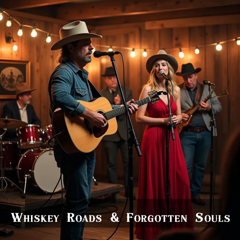 Classic Rock, acoustic guitar, harmonica, bass, and drums, with a touch of piano, country song that blends traditional storytelling with a modern twist