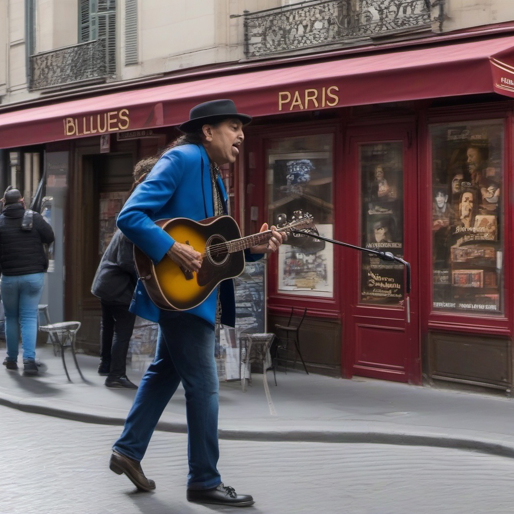 French Blues, Slow and soulful, Acoustic guitar, harmonica, upright bass, soft drum