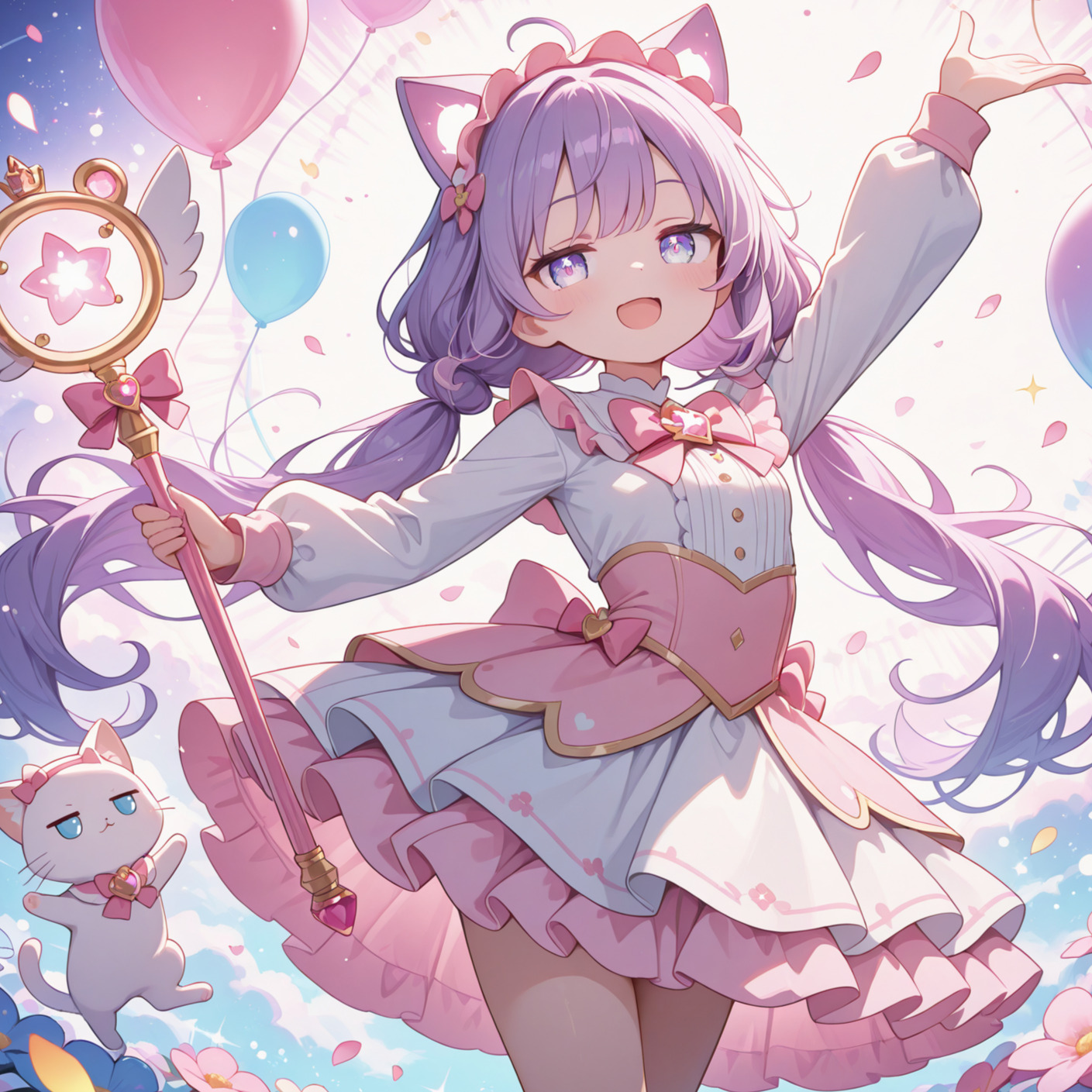 Magical Kawaii Art electronica and modern anime style J-pop blend, elegant cute magical mood, Cute Synth, Lovely xylophone, Soft feel hopping drum, light vibrant bass, (elegant violin), lovely piano, beautiful feather strings sounds, magical FX, Lovely FX, Comfortable refreshing lovely girl's voice, Beautiful harmonies, (Stable Pleasant three-dimensional spatial sound), Double Vocal, (Adjust that the voice and music are in harmony)