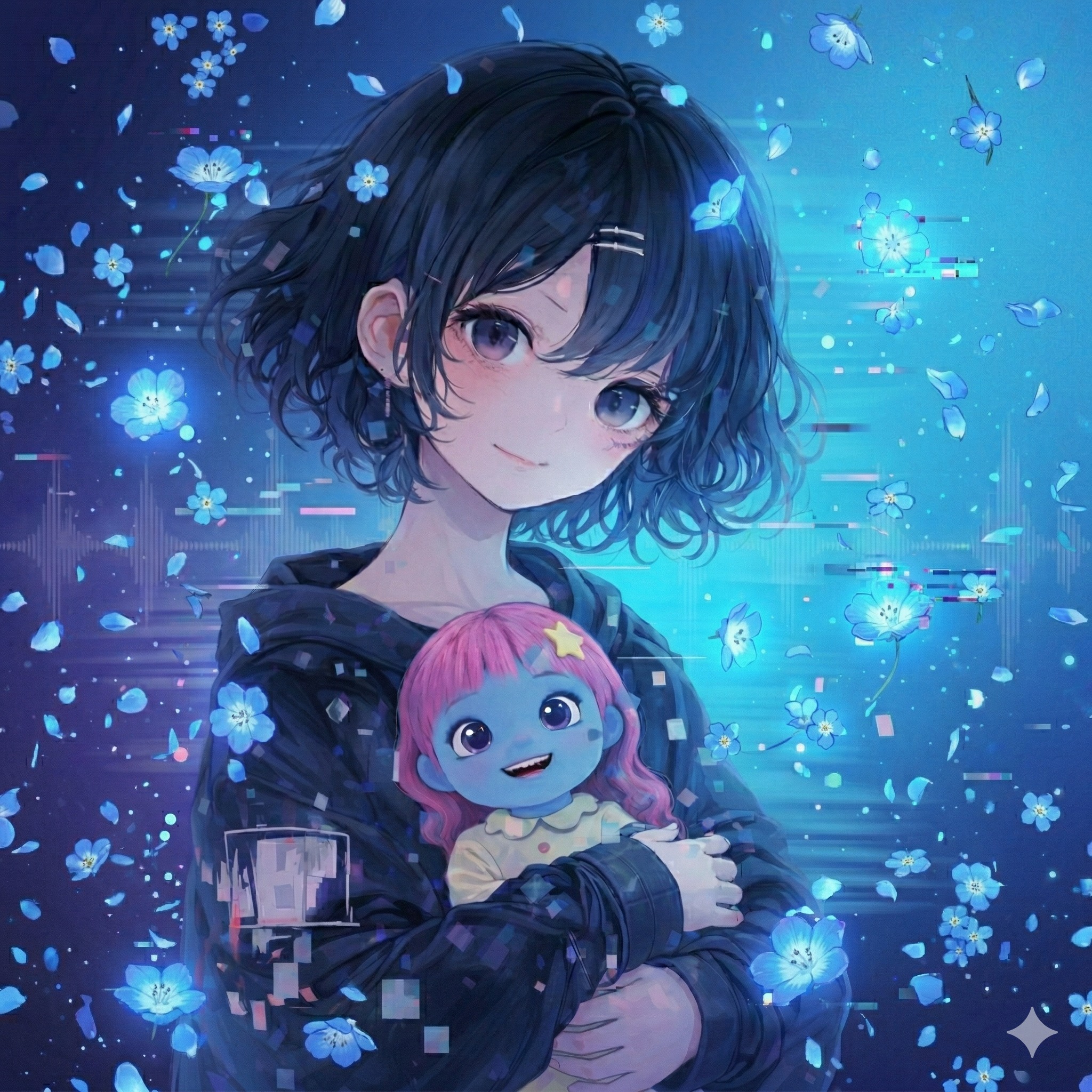 Atmosphere: Stargazer atmosphere, Yami-Kawaii, Digital alienation meets organic warmth, Cyberpunk intimacy
