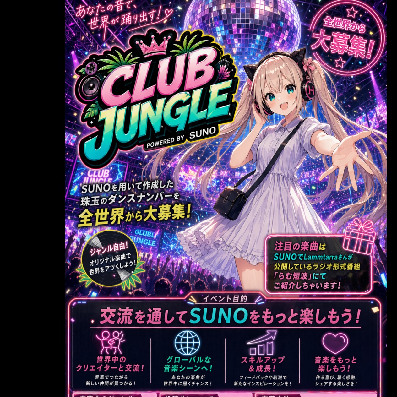 Cute idol pop and showtime swing kawaii future bass blend, high quality, cheerful cute girl's voice, Japanese, cute FX, Castanets, cute tambourine, cuteness mood, cute popping glockenspiel, A pop and wonderful jazz brass band, Technical piano sound, Beautiful and lovely choral harmonies, masterpiece, perfect detail sounds