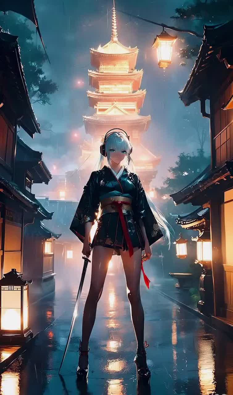 Neo Edo+Tokyo Noir, Deconstructed Time-Travel Fusion, Minimal Drum and Bass, Liquid Breakbeat Elegance, Broken Shamisen Groove, Urban Jazz Bassline, Cinematic Night Atmosphere, Breathy Female Vocals, Ritual Percussion, Deep Sub Pressure, Temporal Glitch Texture