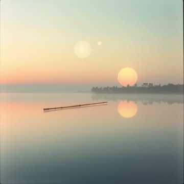 Featherlight meditative soundscape: airy bamboo flute phrases suspended over a barely-there wash of high, shimmering textures and distant nature tones, Extremely soft dynamics, wide stereo field, and long tails on every note create a sense of vast space, Sustain is subtle and evolving, with occasional pauses for silence to breathe and invite awareness, ambient, meditation, natural, light, gentle, low, soft