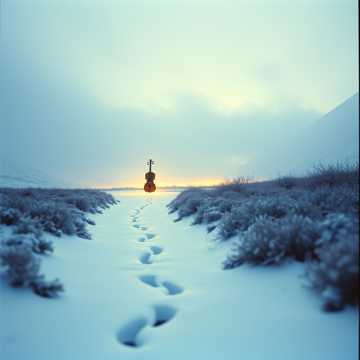 Style: dark dream pop, Highland winter vibes, cold pads, distant piano, soft breathy female vocals, heavy reverb, slow tempo (90-100 BPM), Soft Melancholy Violin, accordion