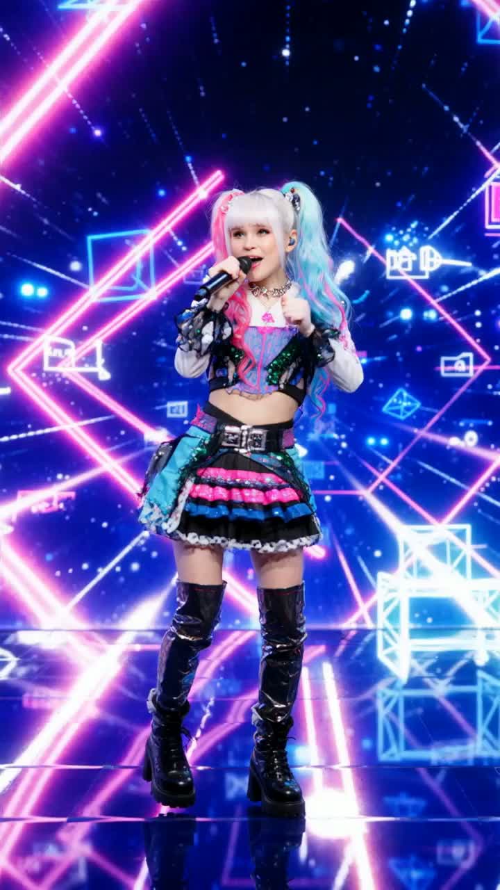[Instrumentation] A Massive, Distorted, and Heavily Compressed Drum Beat with constant, driving hi-hats and powerful, punchy kick drums, Deep, Aggressive Synth Basslines providing both rhythmic funk and intense low-end presence, Guitars are highly distorted and technical, often blending with synth lines to create a wall of sound, Synthesizers are crucial, providing both complex, rapid-fire digital melodies (like a frantic video game score) and dark, industrial textures, The arrangement must feature Extreme Dynamic Shifts (from whispered, fast-paced verses to full-blown, chaotic choruses), The Lead Vocal (Female, Wide Range) must utilize a powerful, almost screaming belt in the chorus, with fast, rhythmic, sometimes low-toned delivery in the verses, featuring heavy use of vocal effects (distortion, autotune, reverb) to create a sense of manic energy and urban dyst
